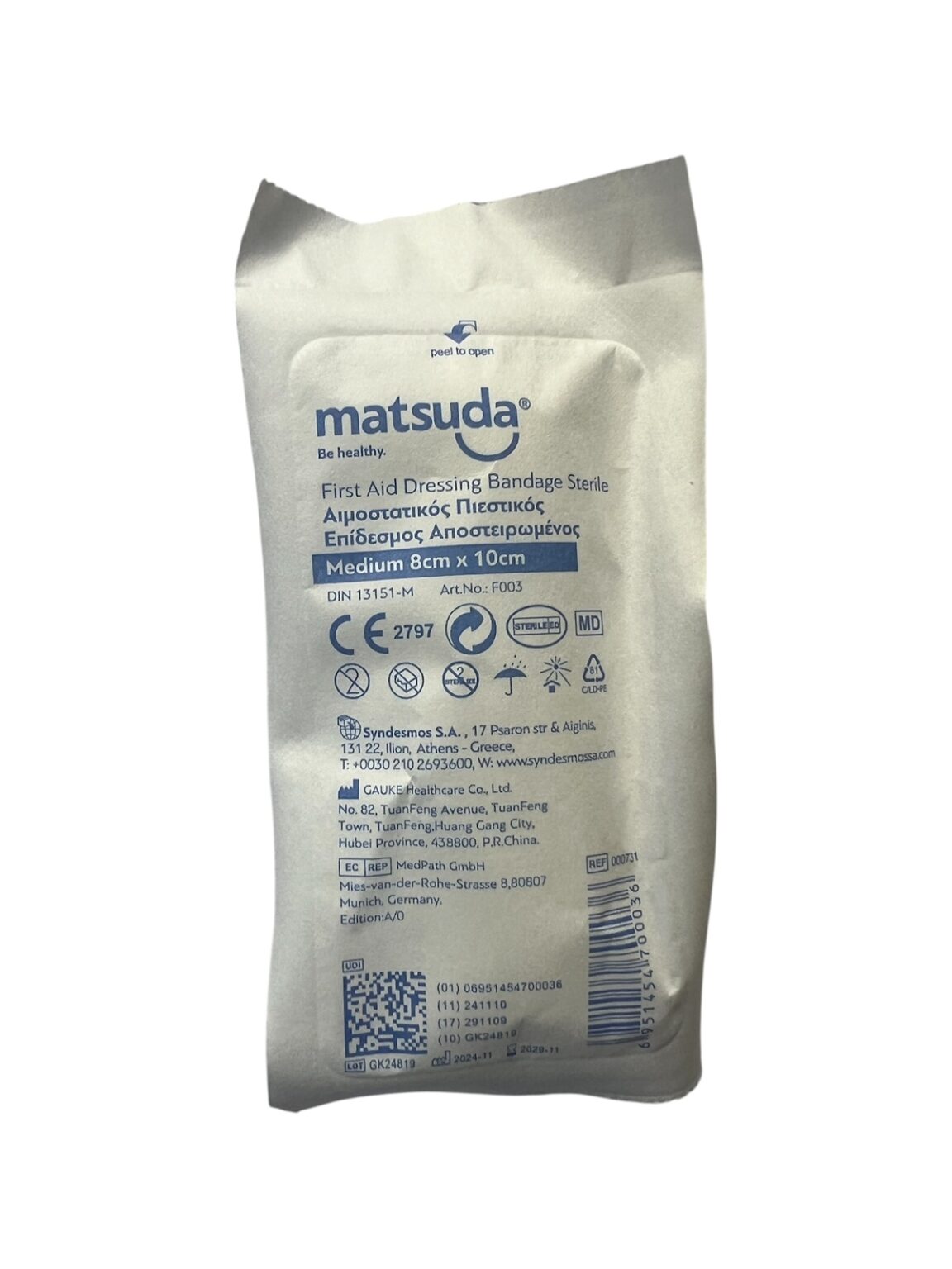 Σχεδιασμένα για χρήση από διασώστες, paramedics και προσωπικό έκτακτης ανάγκης, αυτός ο αποστειρωμένος αιμοστατικός επίδεσμος είναι τυλιγμένος με τέτοιο τρόπο έτσι ώστε να βγει γρήγορα και εύκολα από τη συσκευασία. Το κύριο χαρακτηριστικό είναι το πρόσθετο πάχος του απορροφητικού επιθέματος σε σύγκριση με τους απλούς επιδέσμους. Αυτά τα χαρακτηριστικά τον καθιστούν ιδανικό ακόμη και όταν πρέπει ο χρήστης να περιποιηθεί ένα σχετικά μεγάλο τραύμα.